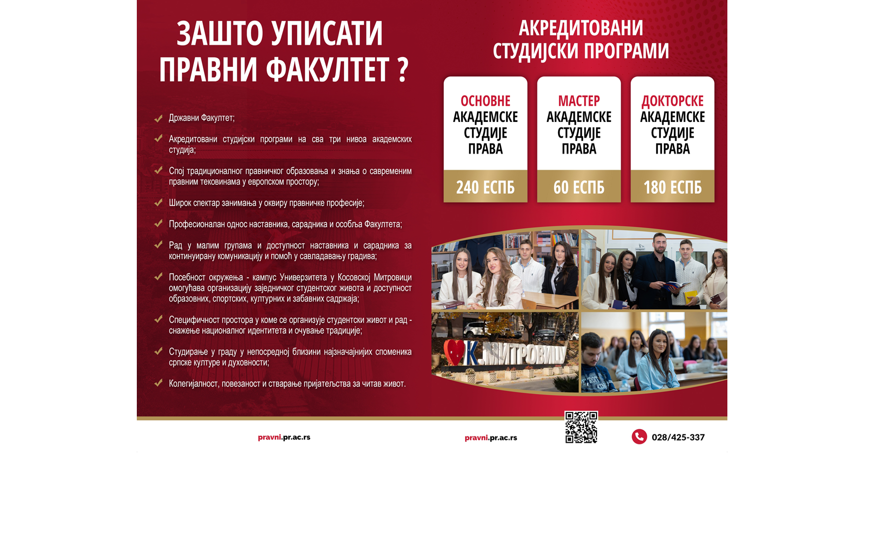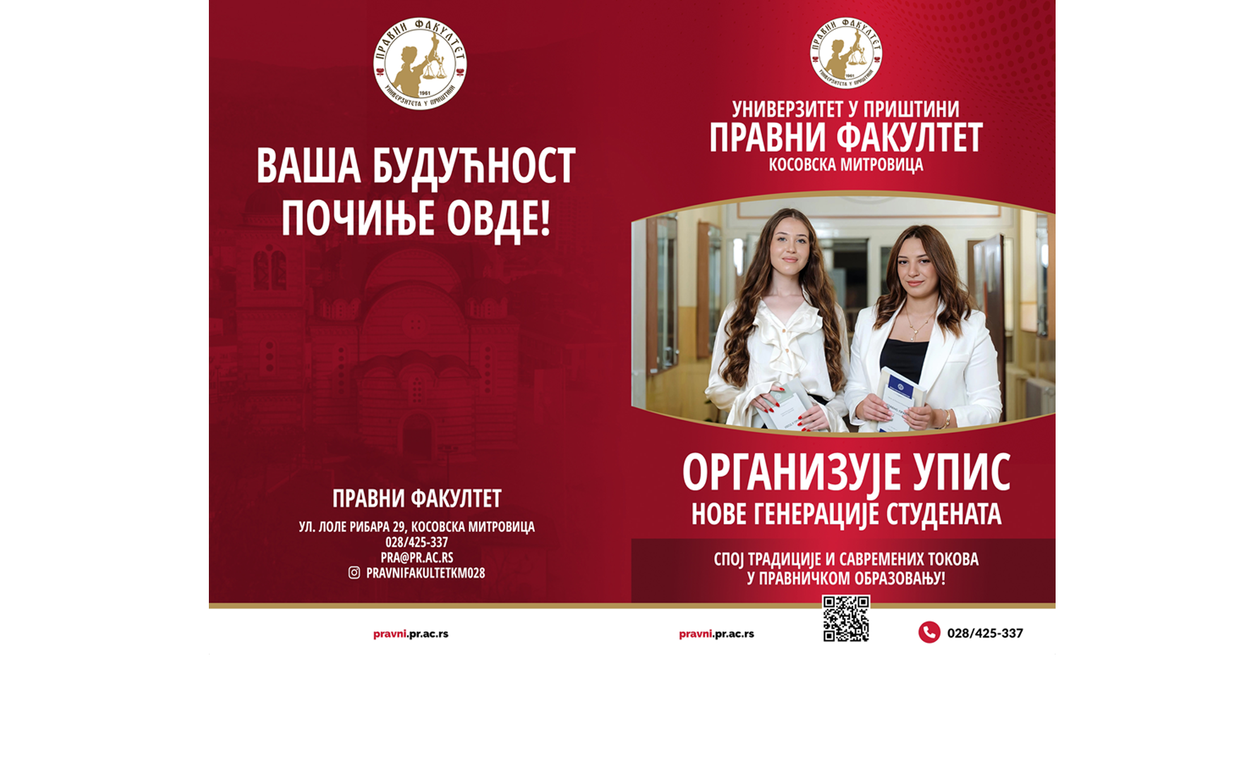Дана 01.10.2025. године Правни факултет Универзитета у Приштини са привременим...